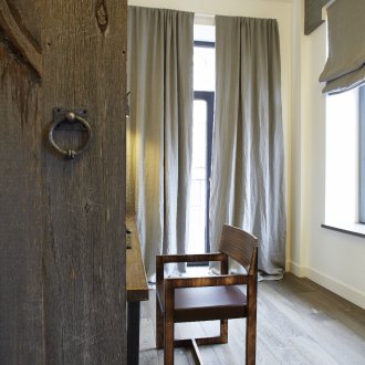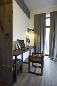 Το πιο δύσκολο δούλευε με ένα παλιό δέντρο από το οποίο κατασκευάστηκαν οι πόρτες και τα τραπέζια. Το δέντρο δεν θέλησε να υπακούσει και άλλαξε το σχήμα του λόγω αλλαγών στην υγρασία και τη θερμοκρασία. Ήταν πραγματικά παλιό, αποσυναρμολογημένο παλιό αχυρώνες από την Ολλανδία. Ήταν επίσης απαραίτητο να σκεφτούμε ένα σύστημα συρόμενων θυρών. Σε γενικές γραμμές, τα πάντα συλλέχθηκαν κυριολεκτικά για λεπτομέρειες, όπως συμβαίνει συχνά όταν τίποτα δεν είναι τυποποιημένο και έτοιμο να σας αρέσει.