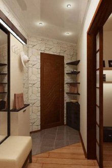Αλλά για να εκδώσει ένα διάδρομο σε ένα διαμέρισμα-Χρουστσόφ ή σε οποιοδήποτε άλλο, μικρό έδαφος, είναι ακόμα αυτό το καθήκον. Ωστόσο, είναι εύκολο να το αντιμετωπίσει, θυμόμαστε ότι ένας τέτοιος διάδρομος είναι μόνο λίγα τετραγωνικά μέτρα του διαδρόμου χωρίς φυσικό φωτισμό, εξυπηρετώντας έναν συγκεκριμένο σκοπό.