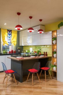 Μελετώντας το σχεδιασμό της κουζίνας και την επιλογή των λαμπτήρων, είναι απαραίτητο να χωρίσετε το δωμάτιο σε διάφορες ζώνες: χώρο αναψυχής, χώρο εργασίας και χώρο αποθήκευσης. Η περιοχή μαγειρέματος θα πρέπει να φωτίζεται πιο έντονα.